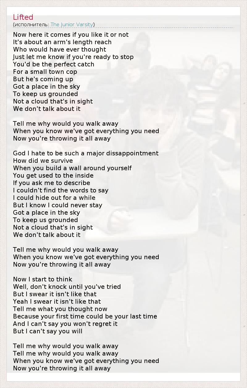 А как ты думаешь, о чем песня "Lifted" ?