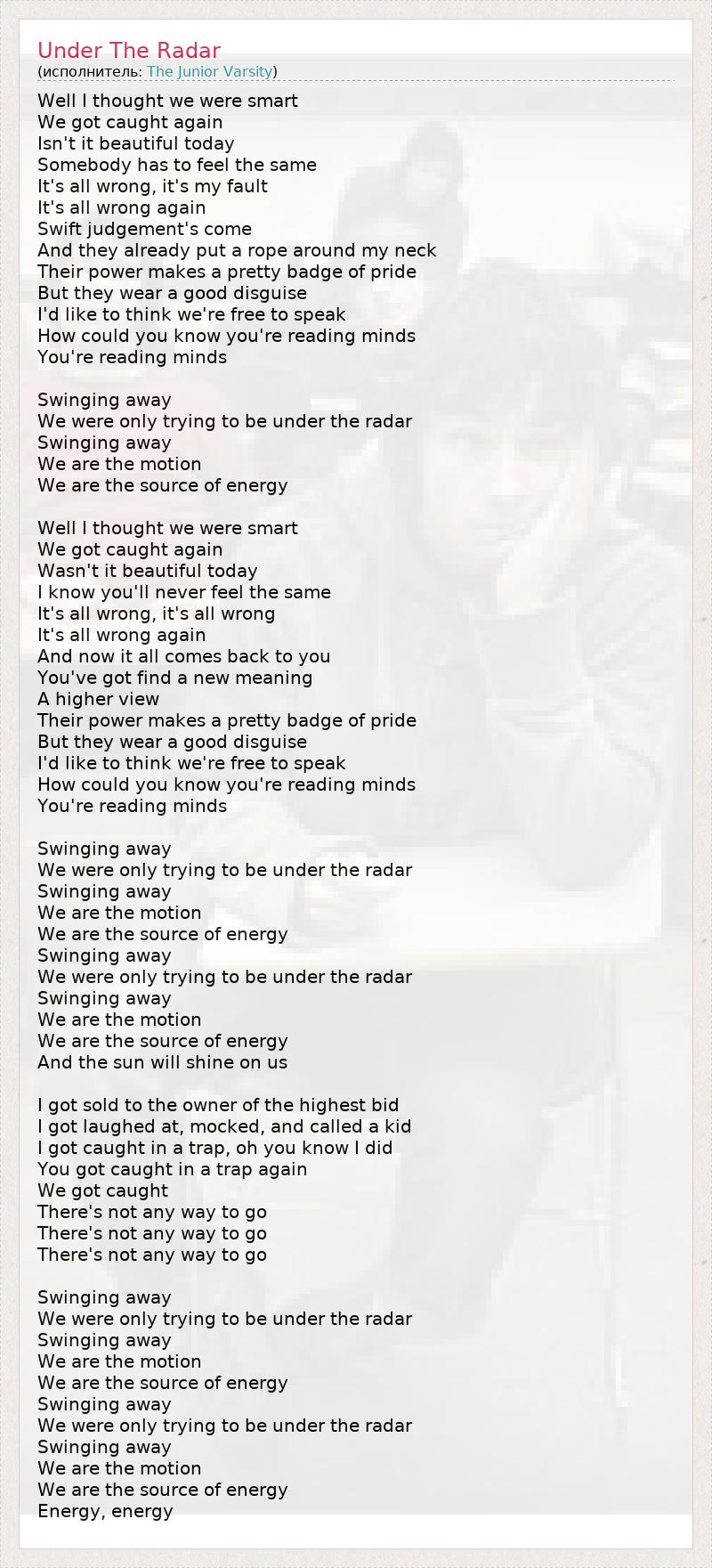 А как ты думаешь, о чем песня "Under The Radar" ?