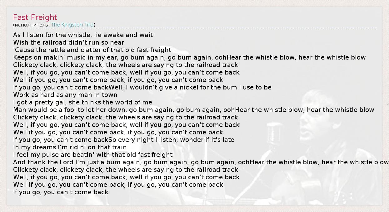 А как ты думаешь, о чем песня "Fast Freight" ?