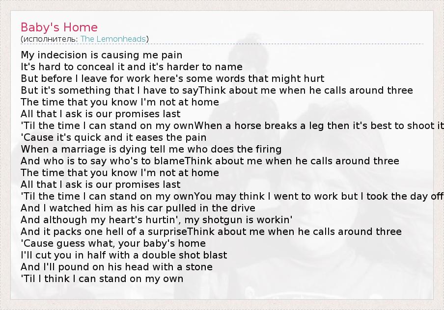 А как ты думаешь, о чем песня "Baby's Home" ?