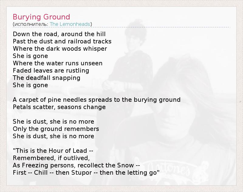 А как ты думаешь, о чем песня "Burying Ground" ?