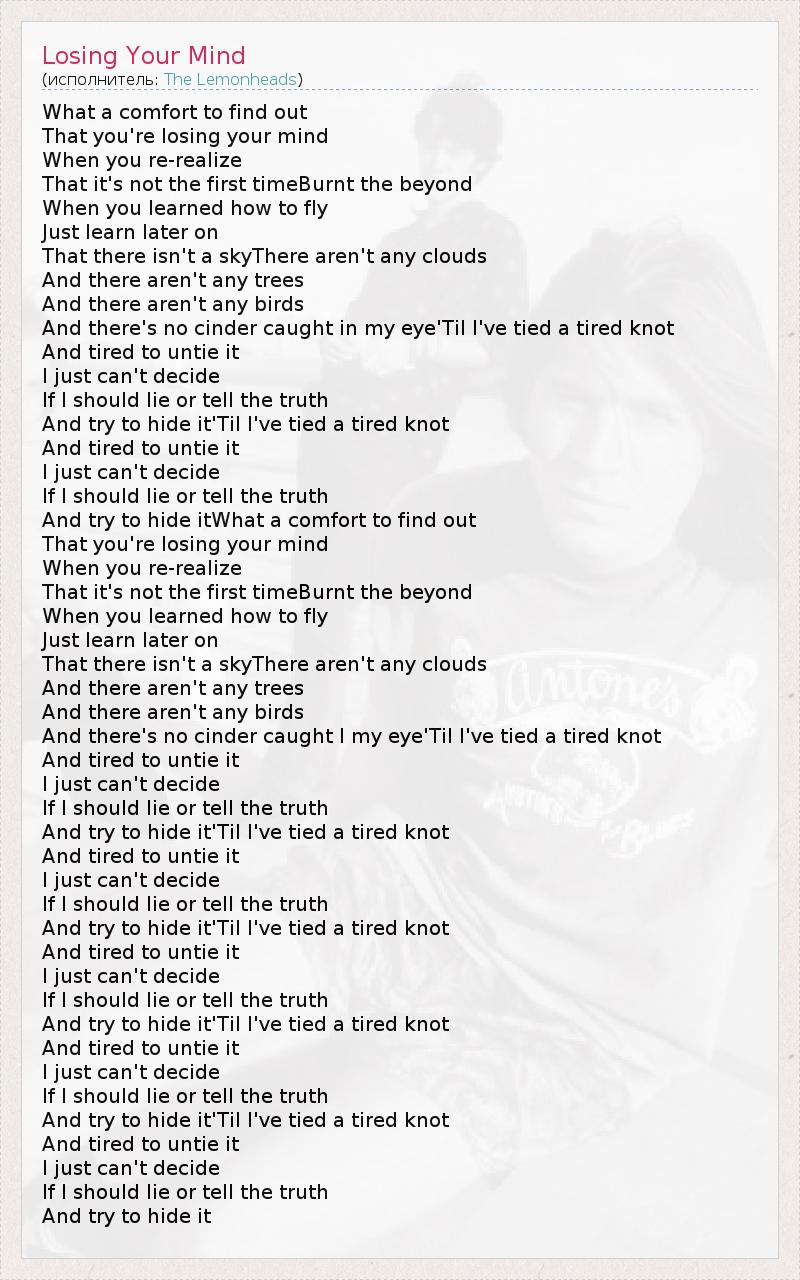 А как ты думаешь, о чем песня "Losing Your Mind" ?