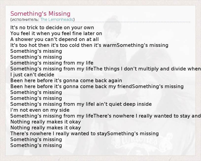 А как ты думаешь, о чем песня "Something's Missing" ?