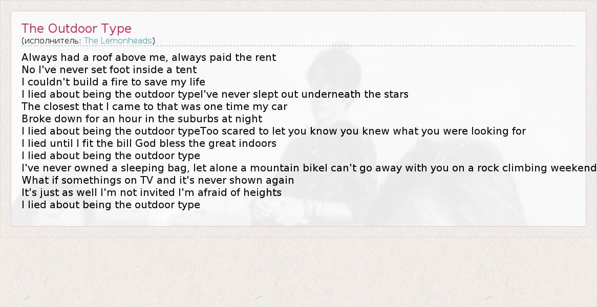 А как ты думаешь, о чем песня "The Outdoor Type" ?