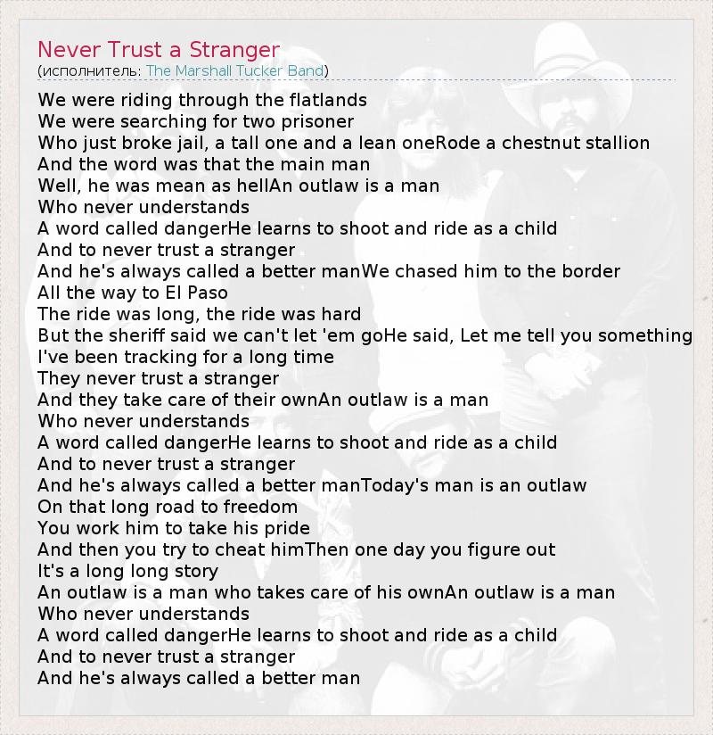 А как ты думаешь, о чем песня "Never Trust a Stranger" ?