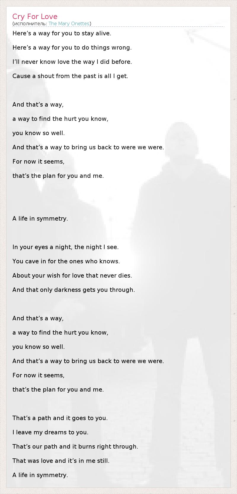 А как ты думаешь, о чем песня "Cry For Love" ?