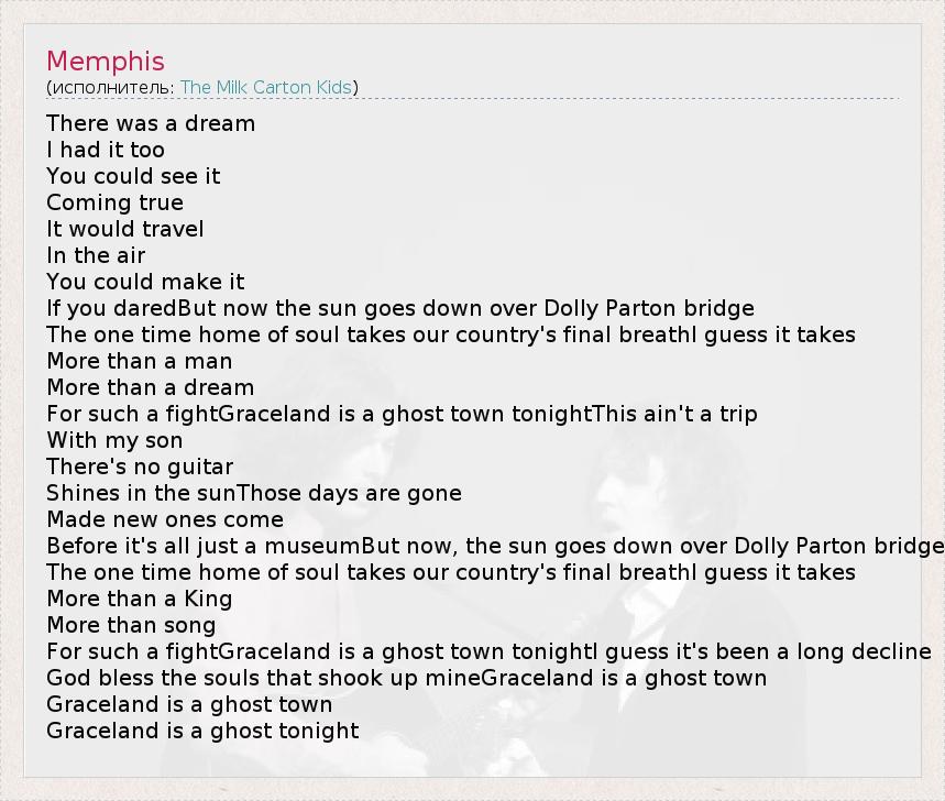 А как ты думаешь, о чем песня "Memphis" ?