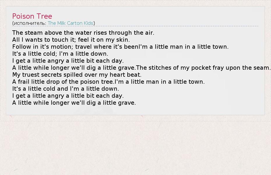 А как ты думаешь, о чем песня "Poison Tree" ?