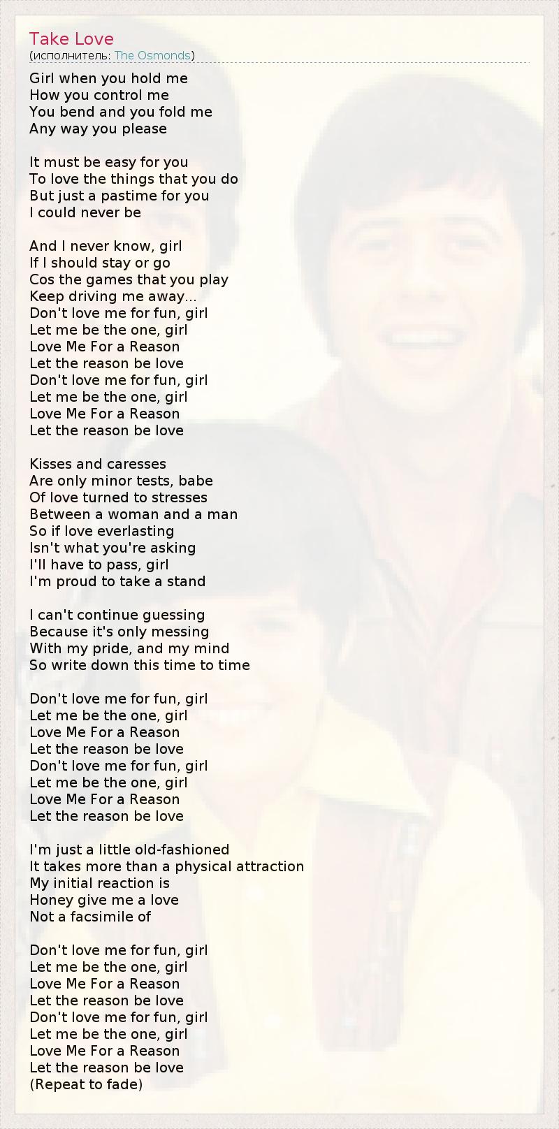 Это интересно:The Osmonds – американская семейная поп-группа, образованная в Огдене, Юта в начале 60-х годов братьями Аланом, Уэйном, Мерилом и Джеем Осмондами. Первый коммерческий успех к ней пришел в начале 70-х годов, когда в состав пришли Донни и Джимми Осмонды. Первый же сингл, написанный для Osmonds продюсером Риком Холлом, «One Bad Apple» (1971) поднялся на 1-е место в Billboard Hot 100 и продержался 5 недель на вершине. За... продолжение