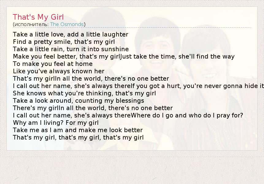 А как ты думаешь, о чем песня "That's My Girl" ?