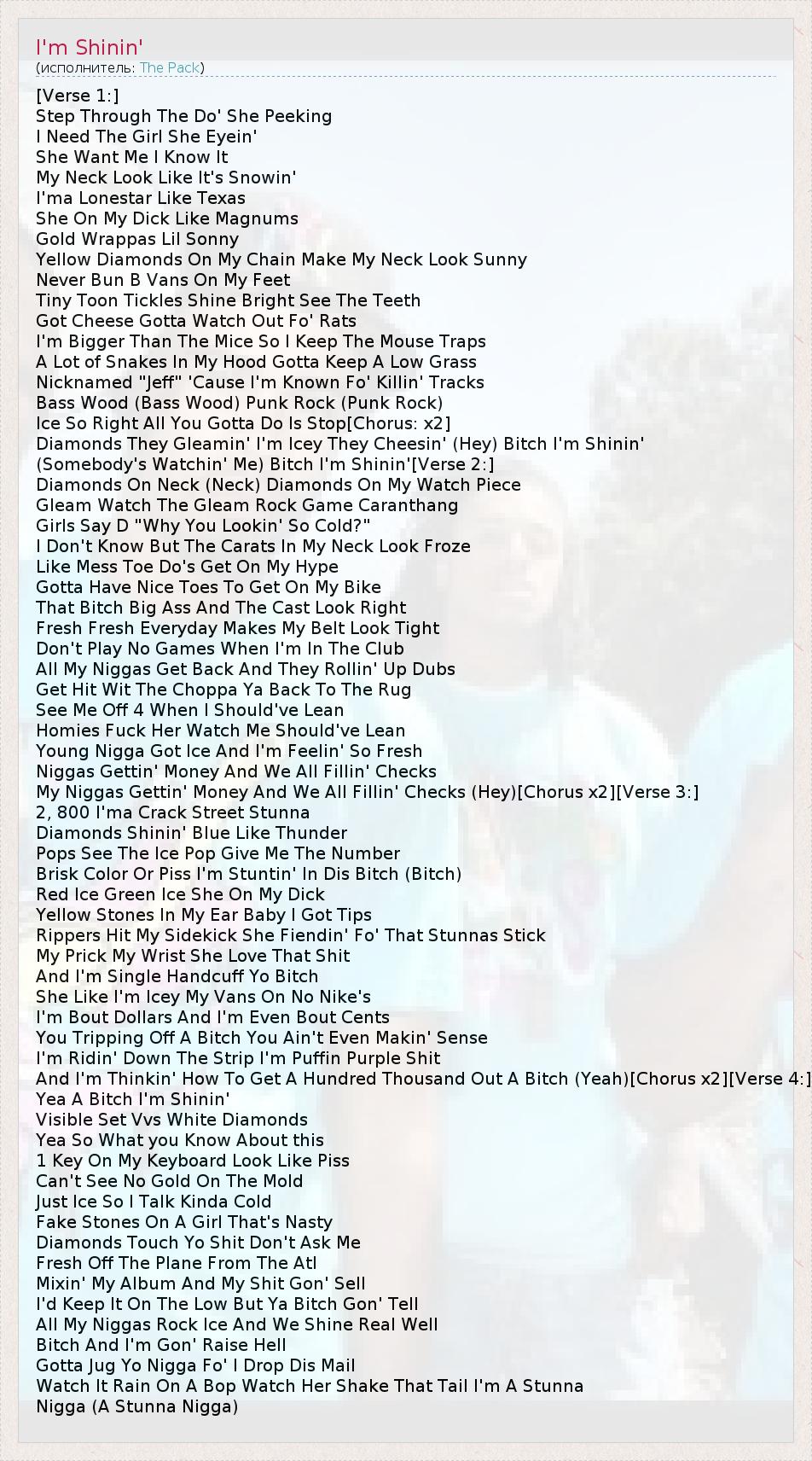 А как ты думаешь, о чем песня "I'm Shinin'" ?
