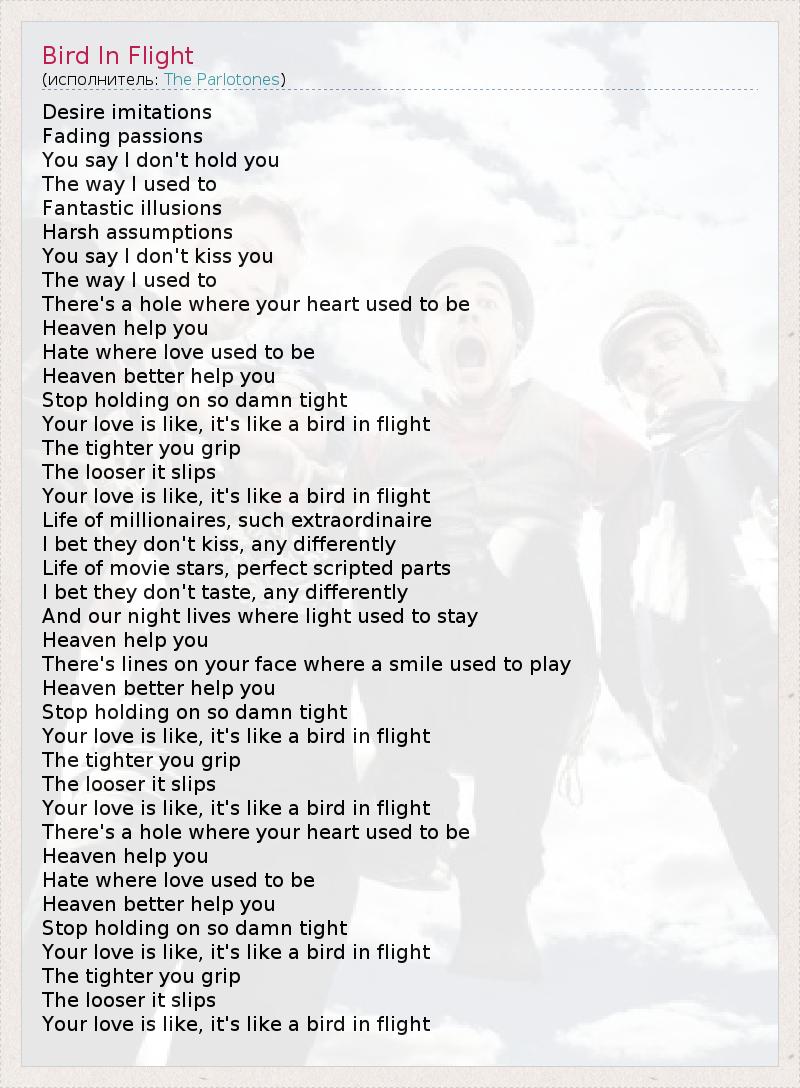 А как ты думаешь, о чем песня "Bird In Flight" ?
