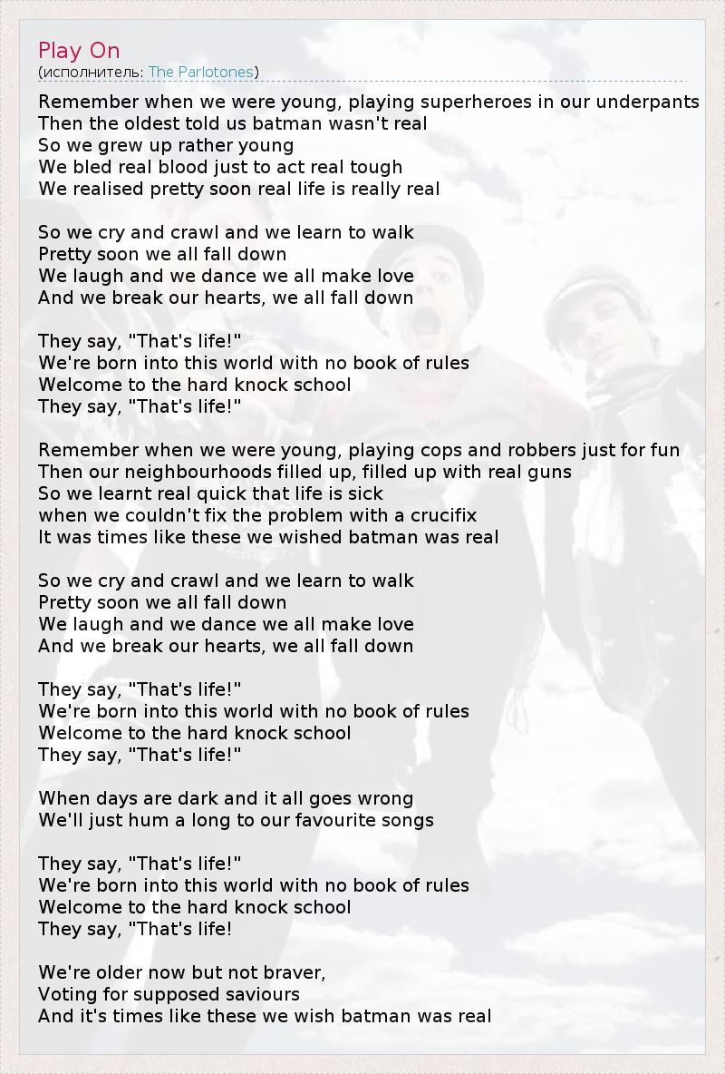 Это интересно:The Parlotones - это четверка белых африканских ребят, музыка которых звучит так, словно они взросли не на прериях Южной Африки, а где-то по соседству с The Killers в Гринвич Виллидж. Несмотря на влияние все тех же The Killers, у группы есть свой фирменный стиль, который грозит со временем затмить ранних героев инди-рока. The Parlotones начали свою карьеру в 2006, играя в ночных клубах при пяти, шести зрителях,... продолжение