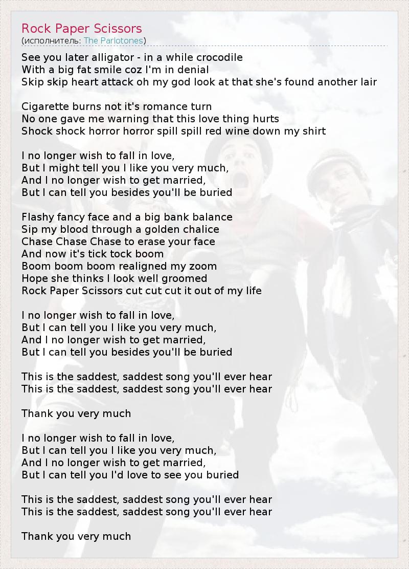 А как ты думаешь, о чем песня "Rock Paper Scissors" ?