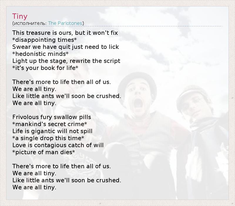 Это интересно:The Parlotones - это четверка белых африканских ребят, музыка которых звучит так, словно они взросли не на прериях Южной Африки, а где-то по соседству с The Killers в Гринвич Виллидж. Несмотря на влияние все тех же The Killers, у группы есть свой фирменный стиль, который грозит со временем затмить ранних героев инди-рока. The Parlotones начали свою карьеру в 2006, играя в ночных клубах при пяти, шести зрителях,... продолжение