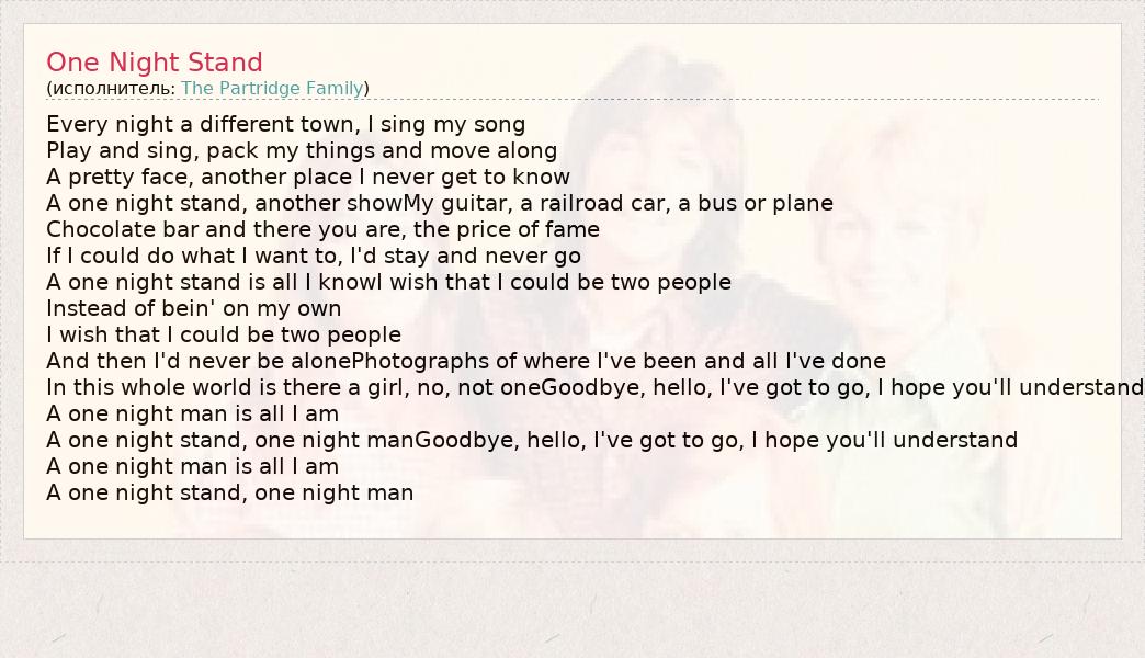 А как ты думаешь, о чем песня "One Night Stand" ?
