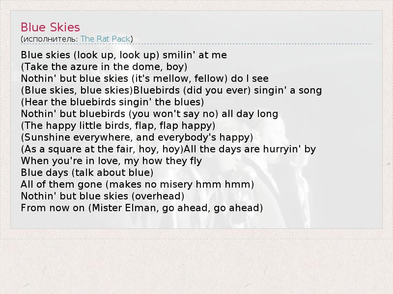 А как ты думаешь, о чем песня "Blue Skies" ?
