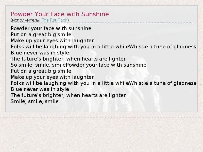 А как ты думаешь, о чем песня "Powder Your Face with Sunshine" ?