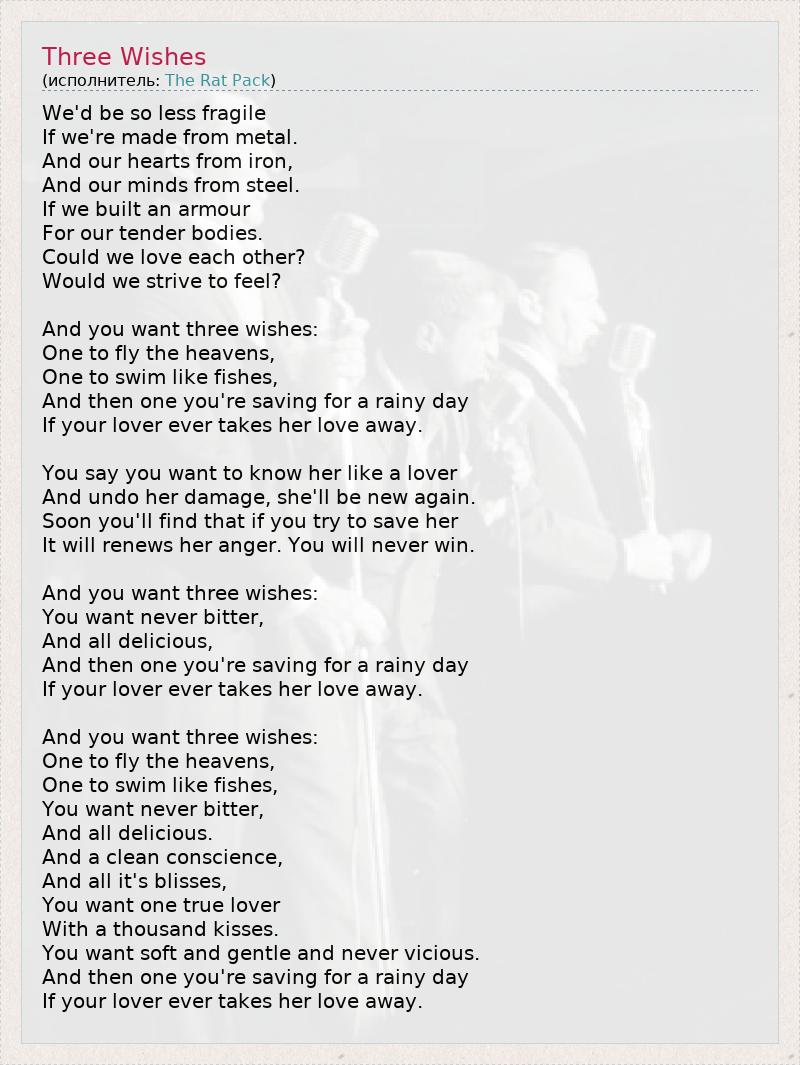 А как ты думаешь, о чем песня "Three Wishes" ?