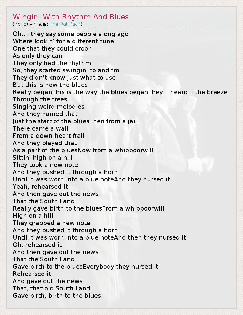 А как ты думаешь, о чем песня "Wingin’ With Rhythm And Blues" ?