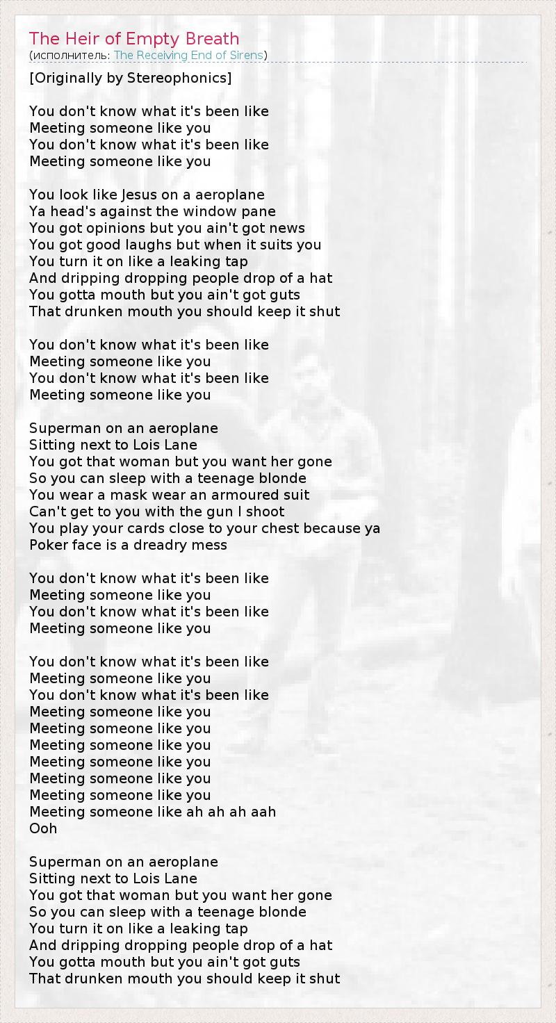 А как ты думаешь, о чем песня "The Heir of Empty Breath" ?