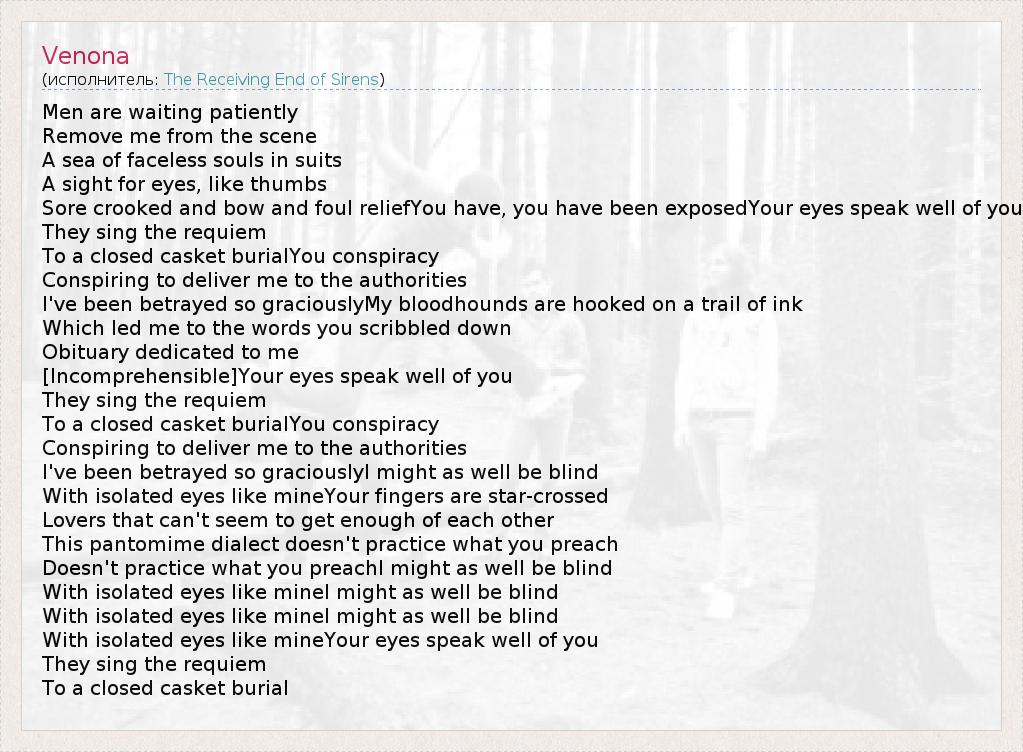 Sore crooked and bow and foul reliefYou have, you have been exposedYour eyes speak well of you