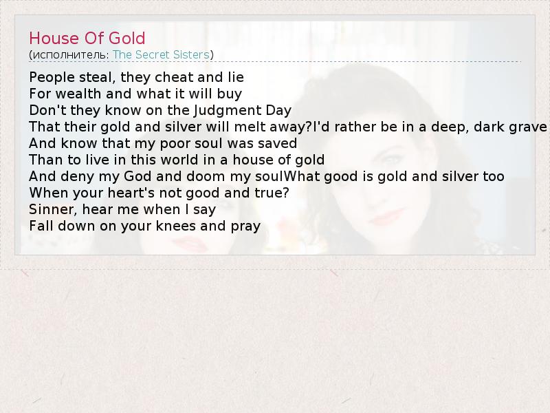 А как ты думаешь, о чем песня "House Of Gold" ?