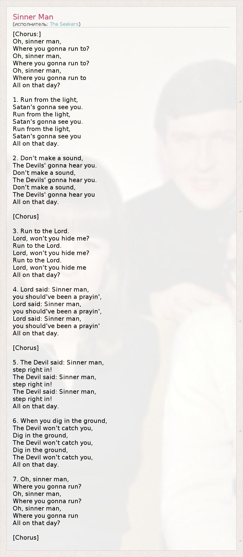 А как ты думаешь, о чем песня "Sinner Man" ?