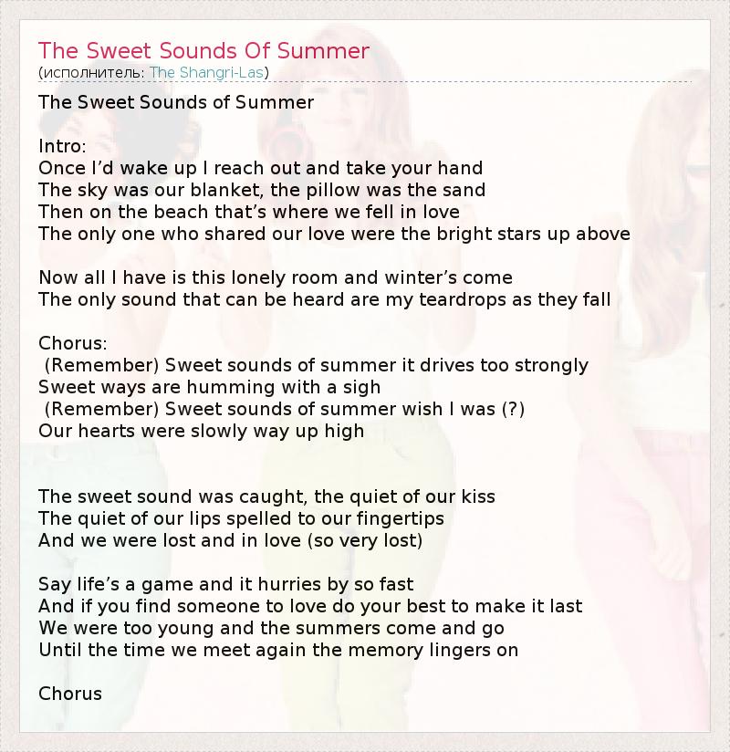 А как ты думаешь, о чем песня "The Sweet Sounds Of Summer" ?