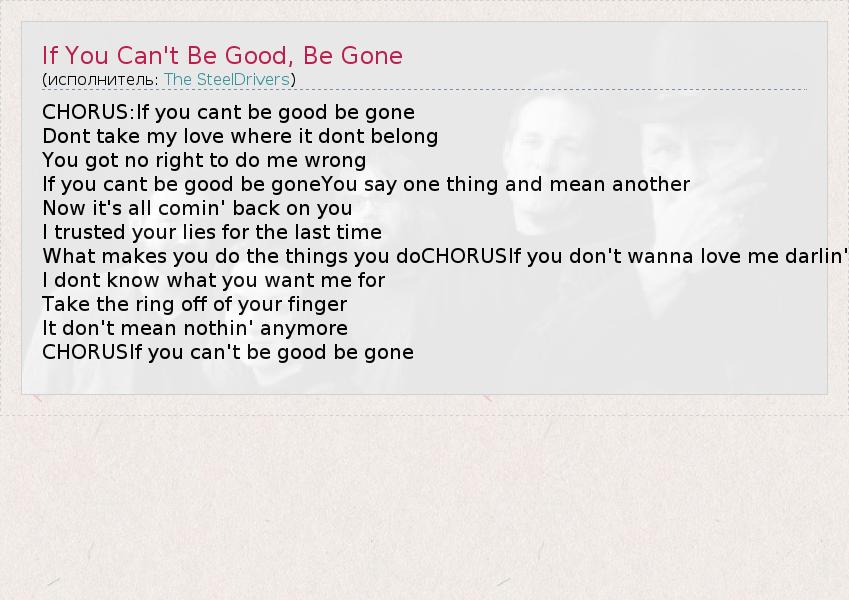 А как ты думаешь, о чем песня "If You Can't Be Good, Be Gone" ?