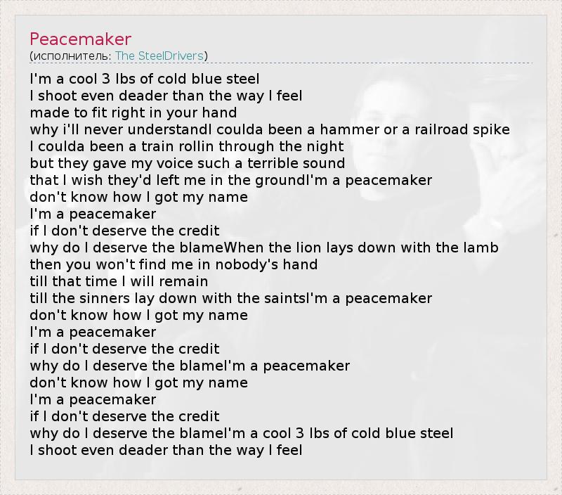 А как ты думаешь, о чем песня "Peacemaker" ?
