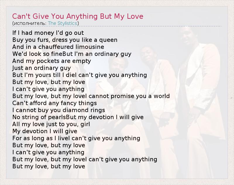 А как ты думаешь, о чем песня "Can't Give You Anything But My Love" ?