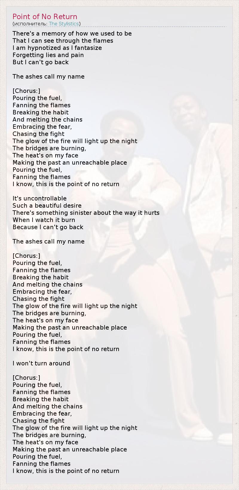 А как ты думаешь, о чем песня "Point of No Return" ?