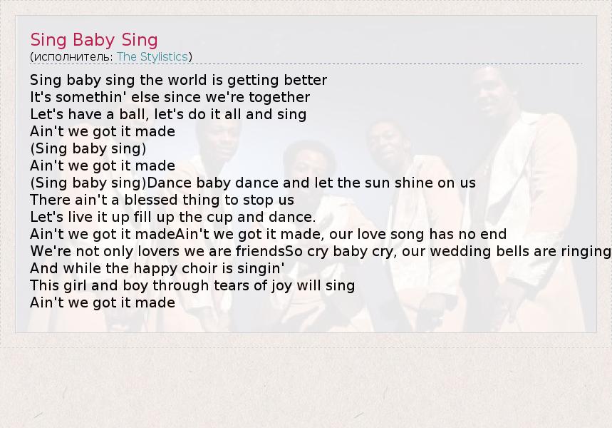 А как ты думаешь, о чем песня "Sing Baby Sing" ?