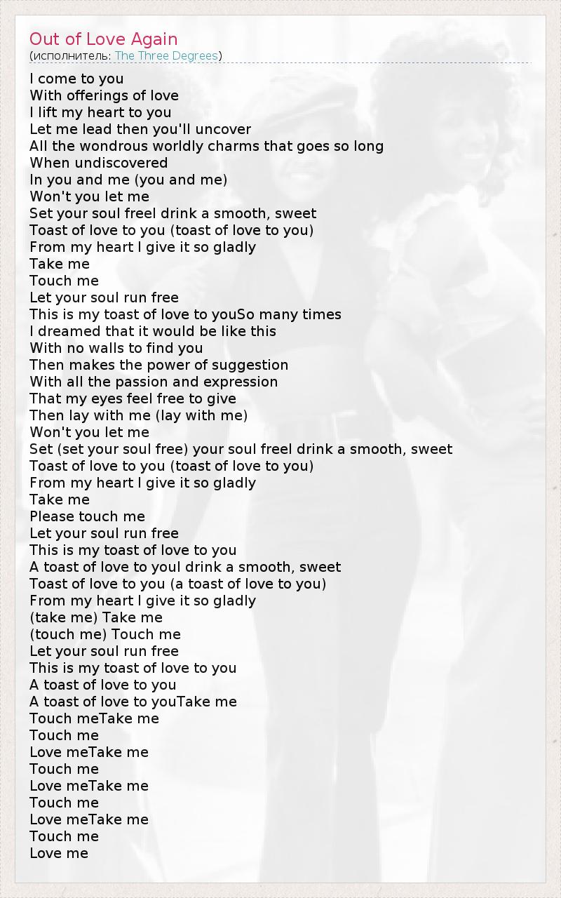 А как ты думаешь, о чем песня "Out of Love Again" ?