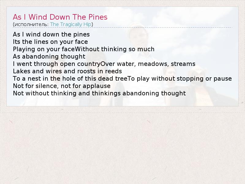 А как ты думаешь, о чем песня "As I Wind Down The Pines" ?