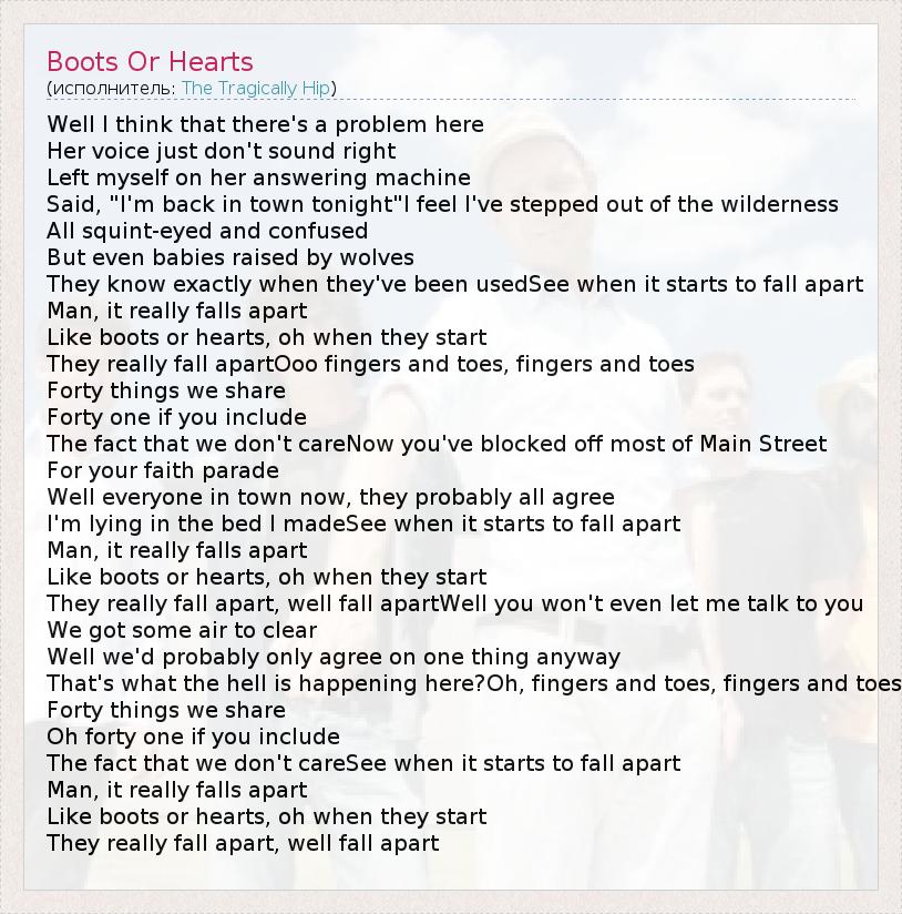А как ты думаешь, о чем песня "Boots Or Hearts" ?