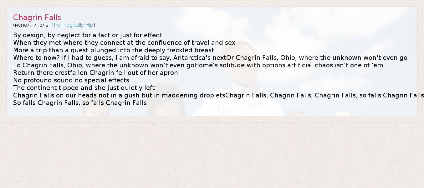 А как ты думаешь, о чем песня "Chagrin Falls" ?