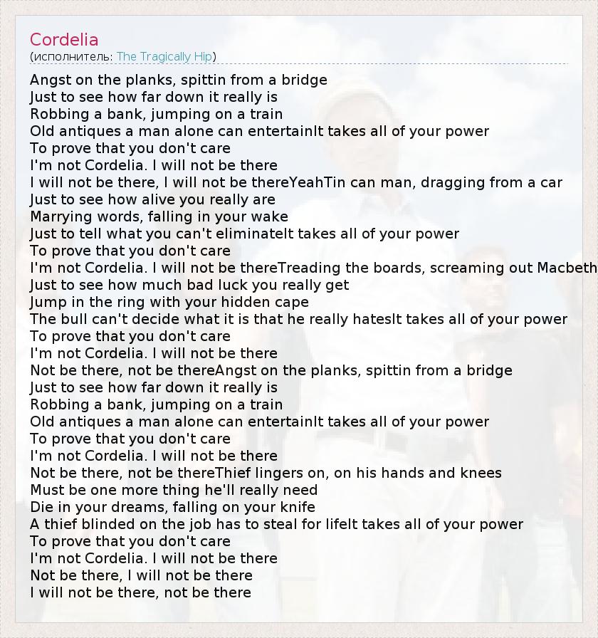 I'm not Cordelia. I will not be thereTreading the boards, screaming out Macbeth