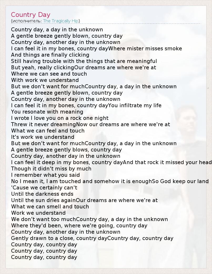 А как ты думаешь, о чем песня "Country Day" ?
