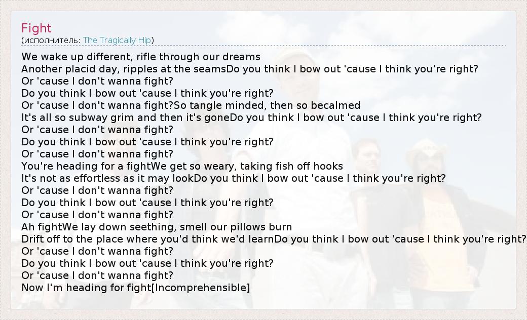 Or 'cause I don't wanna fight?So tangle minded, then so becalmed