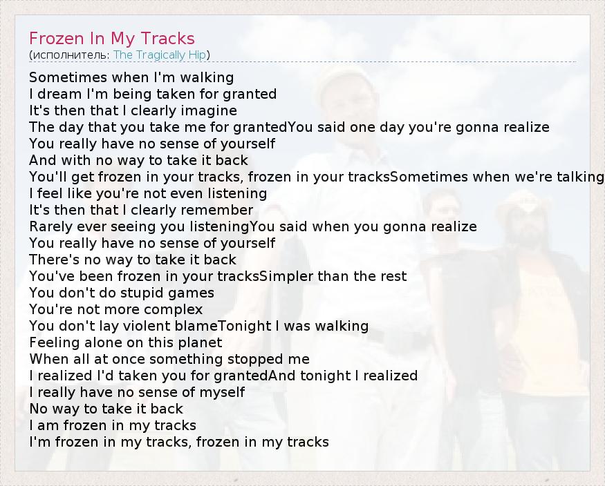 А как ты думаешь, о чем песня "Frozen In My Tracks" ?