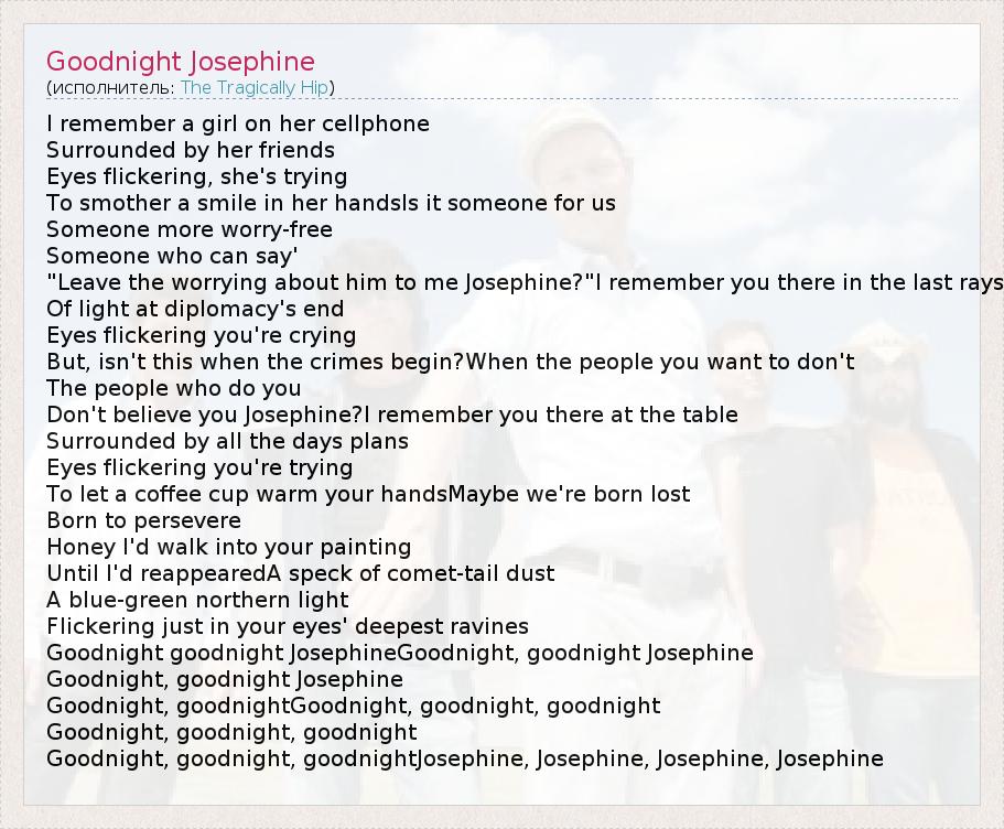 А как ты думаешь, о чем песня "Goodnight Josephine" ?