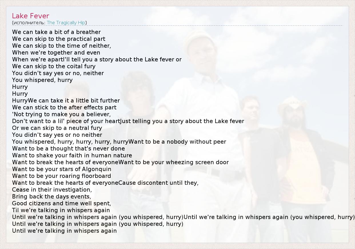 А как ты думаешь, о чем песня "Lake Fever" ?