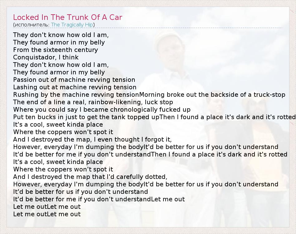 А как ты думаешь, о чем песня "Locked In The Trunk Of A Car" ?