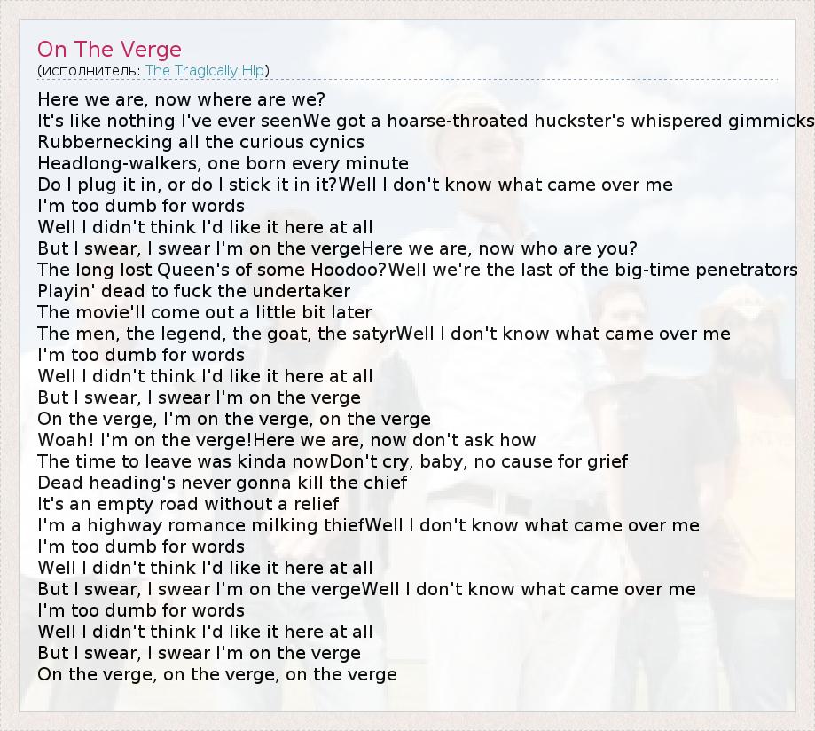 But I swear, I swear I'm on the vergeHere we are, now who are you?
