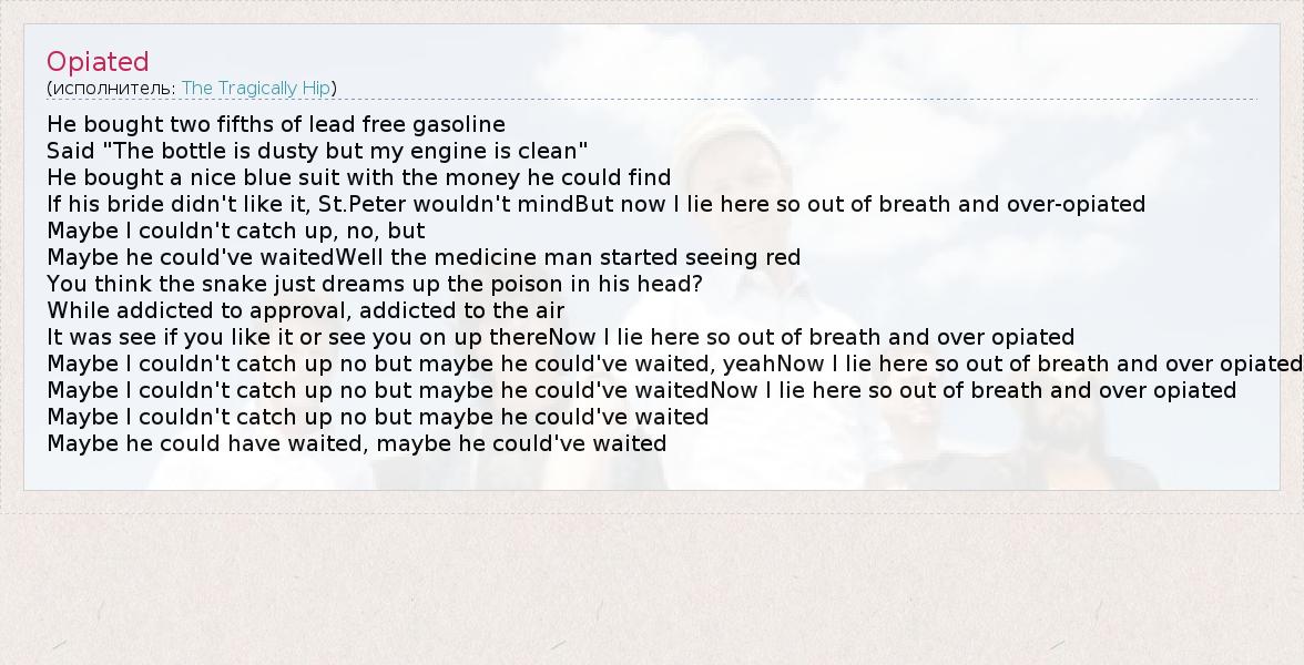 А как ты думаешь, о чем песня "Opiated" ?