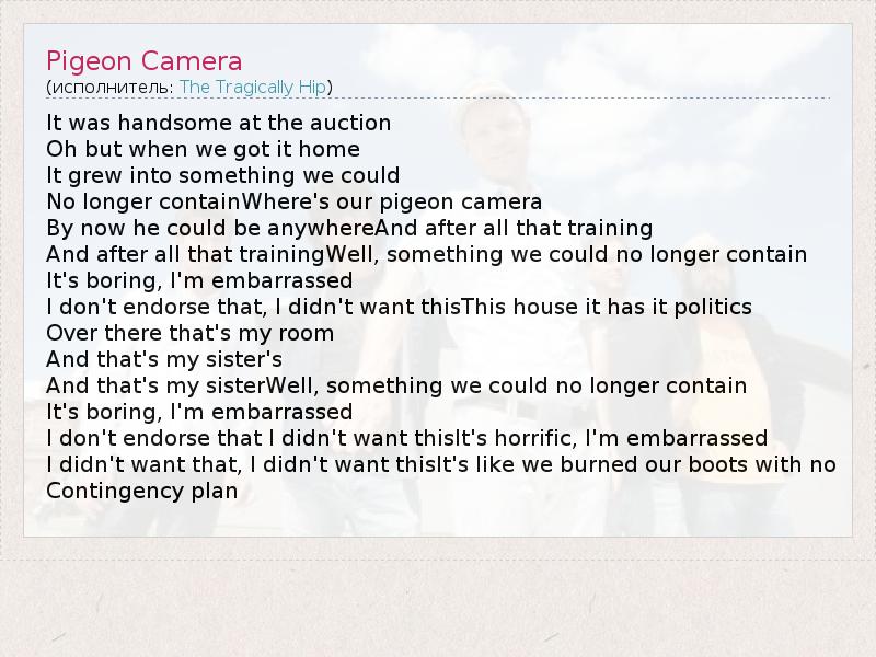 А как ты думаешь, о чем песня "Pigeon Camera" ?
