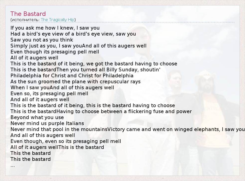 This is the bastardThen you turned all Billy Sunday, shoutin'