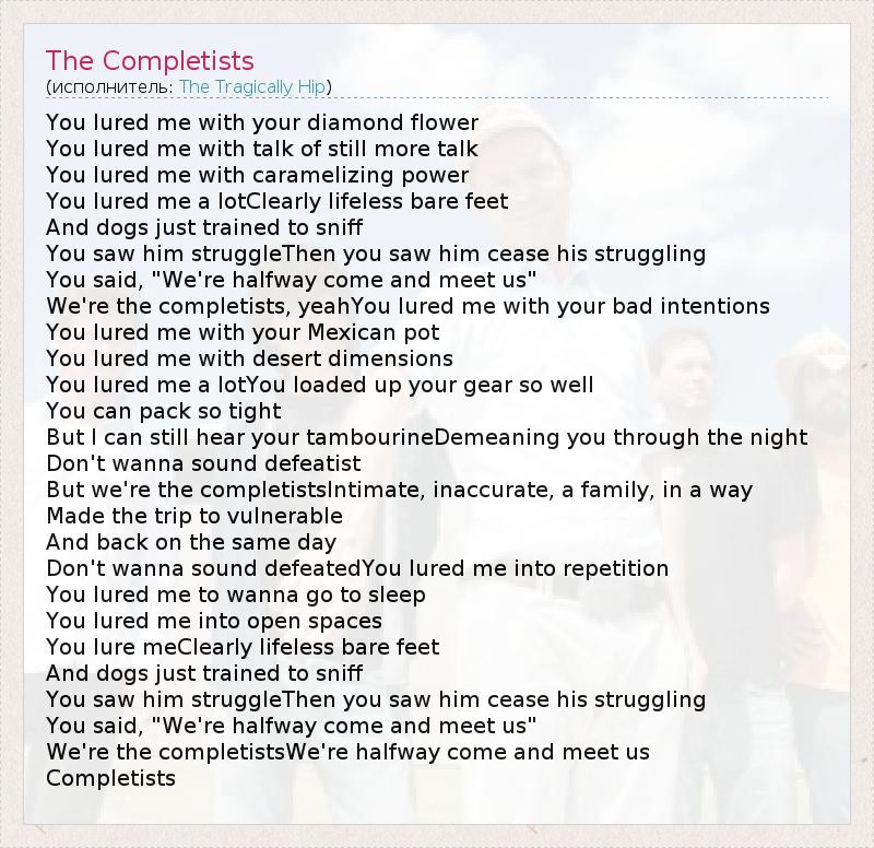 А как ты думаешь, о чем песня "The Completists" ?